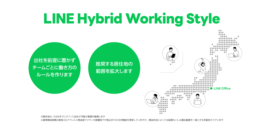라인 일본법인에서는 2020년부터 잠정적인 대응으로 '하이브리드 근무'를 이어오면서 <보다 효율적으로, 높은 퍼포먼스를 지속적으로 발휘할 수 있는 근무형태>를 직접 검증・실험해 왔다. 그 결과, 작년 말부터는 잠정적인 대응을 종료해 본격적으로 "LINE Hybrid Working Style" 시행에 나섰다. 국내에서는 라인플러스가 코로나19 상황과 관계없이 직원들이 원하는 곳에서 자유롭게 일할 수 있도록 하는 '하이브리드 워크 제도'를 시행하기로 했다. 이에 따라 사무실도 기존 고정석에서 더 효율적인 자율 좌석제로 바꿀 계획이라고 밝혔다.