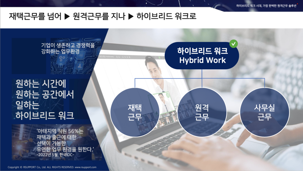 지난 몇 년 팬데믹을 겪으면서 비대면 및 재택으로 어디서나 근무할 수 있다는 것을 경험한 기업과 직원들은 앞으로도 다양한 협업 툴과 원격 근무 시스템을 갖추고 사무실 출근 대신 업무 효율을 높일 수 있는 여건을 도입하려 하는 상황입니다.