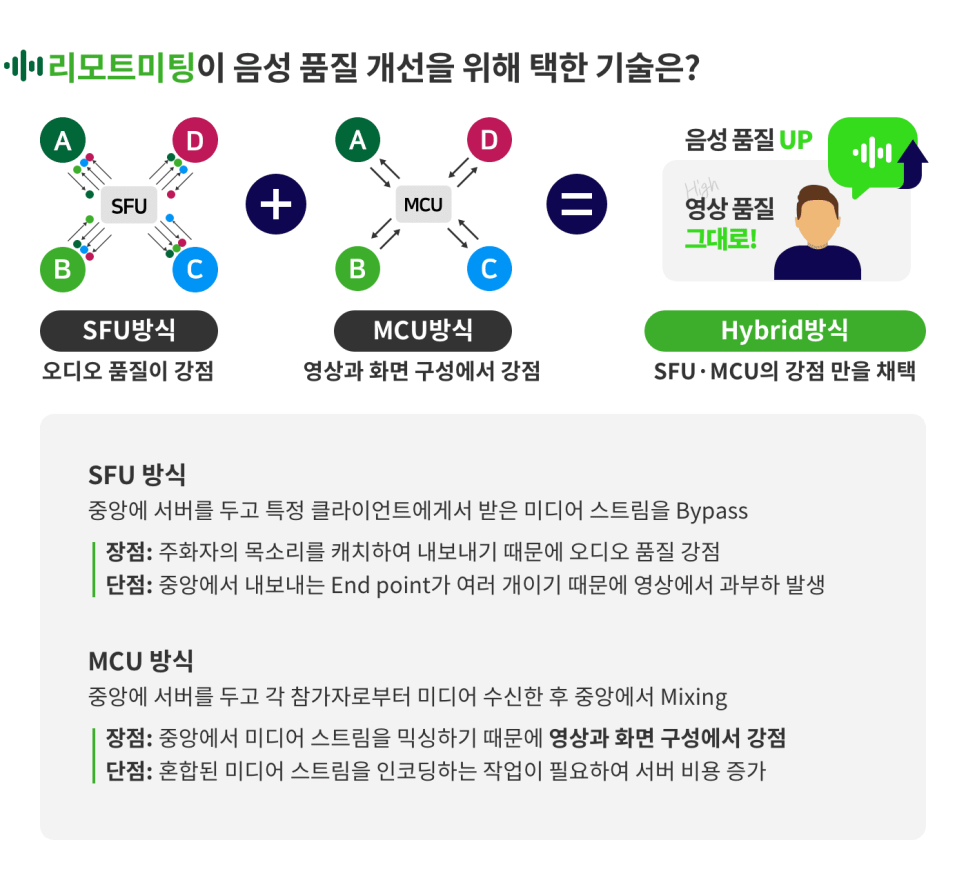 리모트미팅만의 하이브리드방식 기술 접목으로
