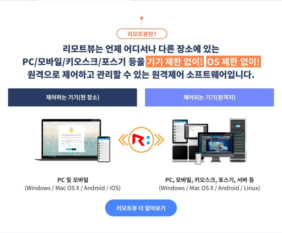 리모트뷰는 다른 장소에 있는 PC/모바일/키오스크/포스기 등을