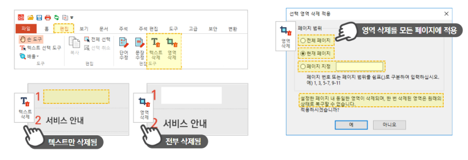 영역을 설정해 원하는 부분만 삭제가 가능합니다.