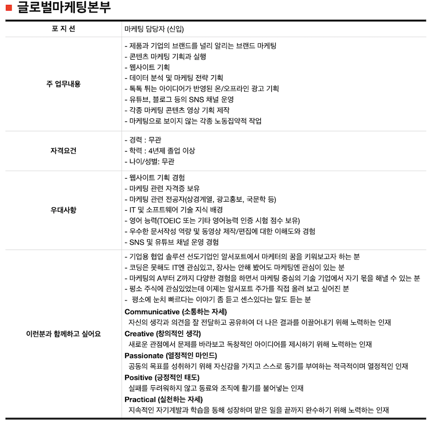 글로벌마케팅본부(신입), 마케팅커뮤니케이션팀(경력),