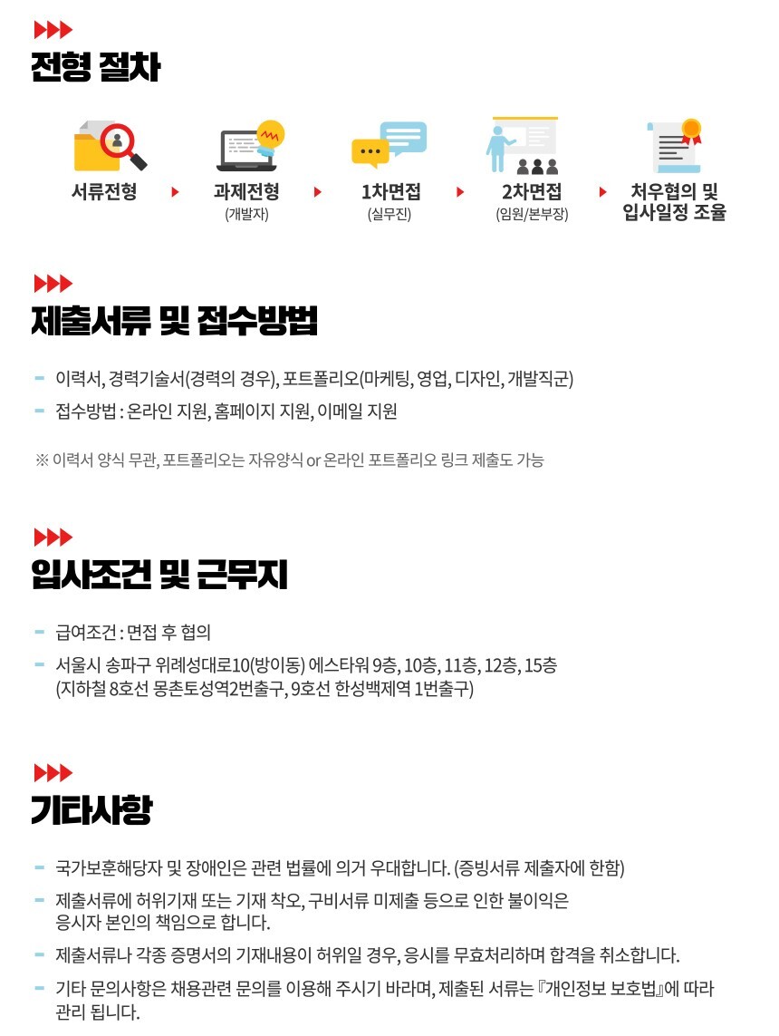 아래 채용공고 한번 체크해 주시고 많은 지원 부탁드립니다 :)