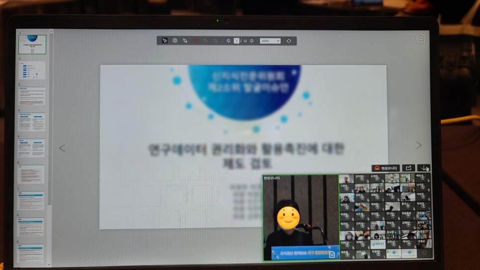 자료 없이 말로만 설명을 할 때, 또는 발표자 외 다른 분의 의견을 함께 전하고 싶을 때 등 필요에 따라 적합한 화면 구성으로 바꿔가며 진행되어 현장에 계셨던 분들도 온라인으로 참석하신 분들도 몰입감 있게 집중하며 들을 수 있었던 것 같습니다.