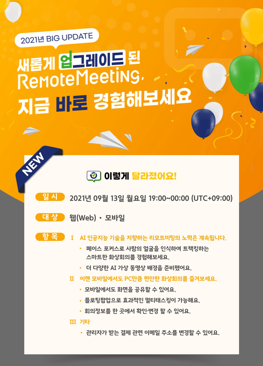 화상회의 솔루션 RemoteMeeting(리모트미팅)이 새롭게 업데이트되었습니다.